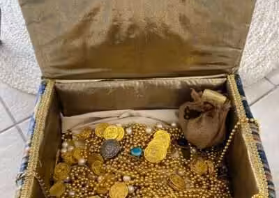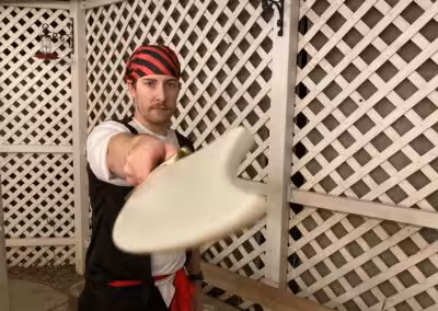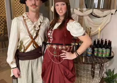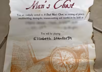 “We loved A Dead Man’s Chest! It was my first murder mystery and I hosted! Many of our guests had done murder mysteries before and they all said this was one of their favorites. The game was fun and ran smoothly. I really love how these games are written so that each individual can make the character their own. We’ve decided to make it an annual Halloween party to do a murder mystery. The hardest part is deciding which game to do next!”