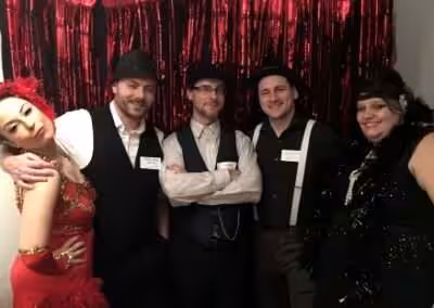 “My guests had a blast at A Speakeasy Murder. The costumes were great. We had a full house including Ginger Roberts. I strongly advise allowing plenty of time in advance to pull everything together. You should have at least two doorkeepers (we had three) because they will be very busy. If possible assign someone to be the party photographer because you don’t want to miss out on getting picture of people in their 20s finest.”