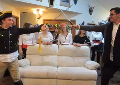 “Hey there!! It was a crazy day running A Dead Man’s Chest as a Spanish exam for both lunch and dinner (48 players total), but it was also a lot of fun. The students had a great time and rose to the challenge of playing the game for three hours with no English. I’m happy to say that everyone received either an A or a B on the final exam! (There was also an essay part to the exam, during which students had to write about the evening from the perspective of their character.)