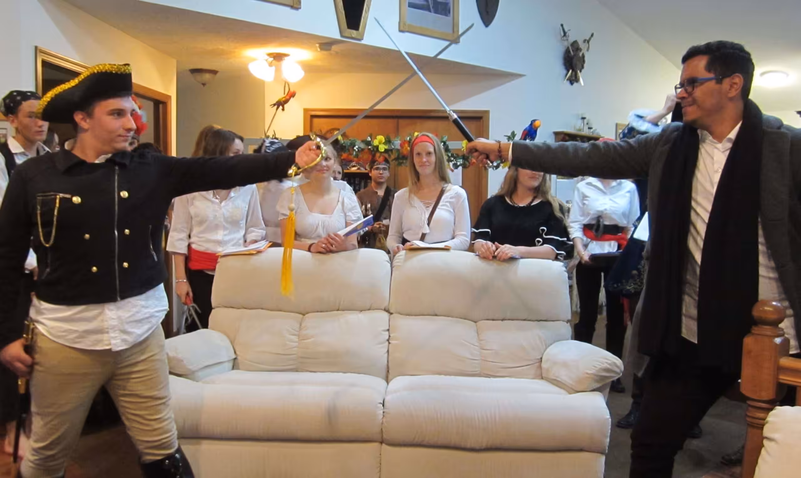 “For our “duels,” we let the players pose with swords (my husband collects swords) for some cool pictures, but then the duel is settled by the roll of the dice. Instead of rock/paper/scissors, we try to find something that fits in the theme of the game. Since they play the dice game in the Pirate movies, we use dice for this game.
