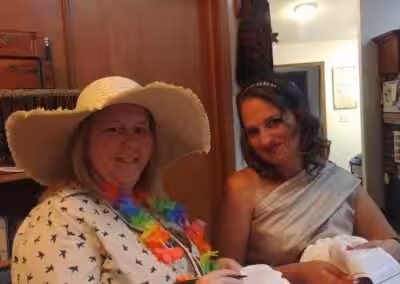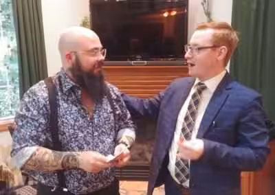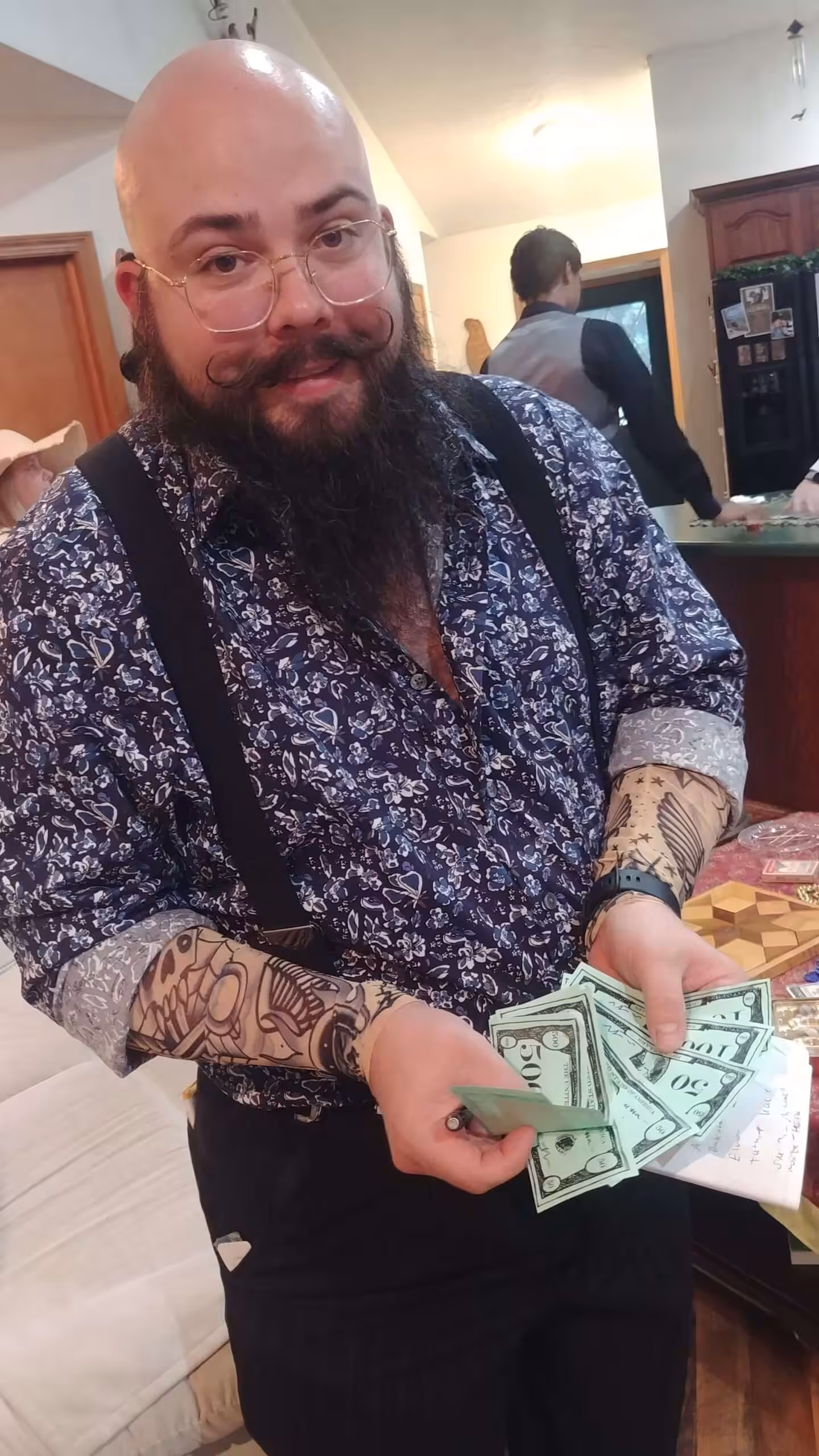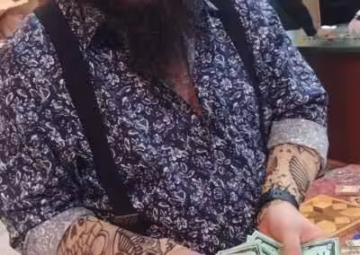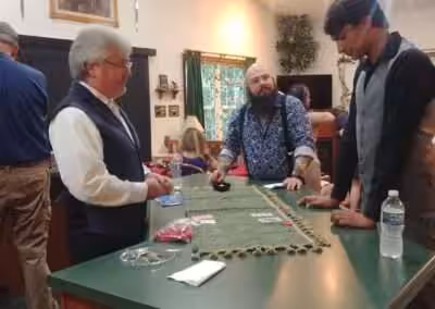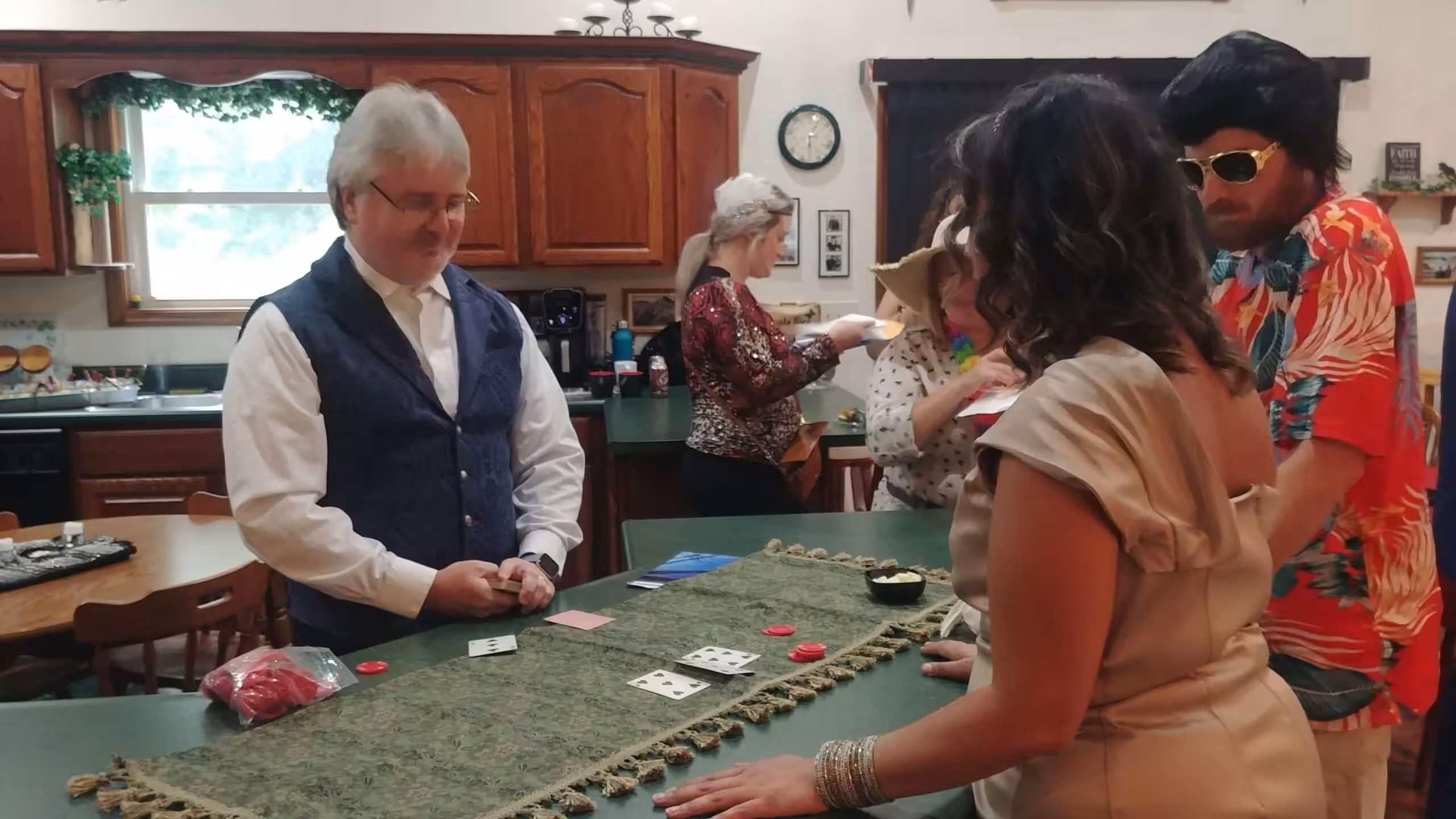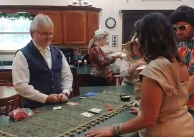 “My husband (assistant host) ran a blackjack table while he wasn’t doing anything. He suggests having some extra cash incorporated into the game to do something like this and let the players actually win something. To settle duels, we had players roll some big fuzzy dice.”